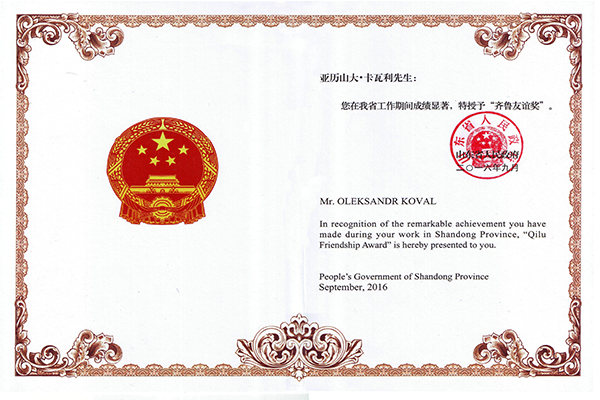 卡瓦利——齊魯友誼獎(jiǎng)