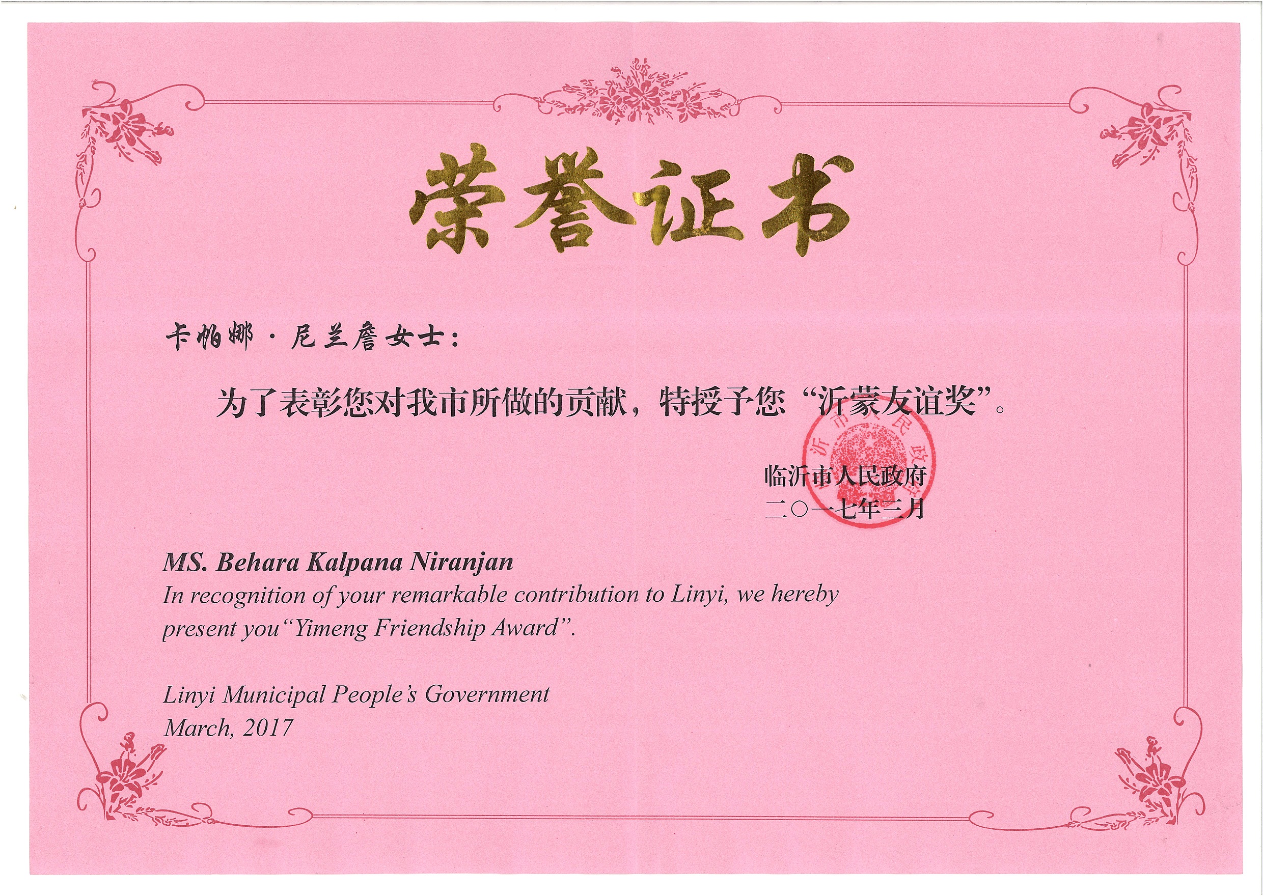 Kalpana“沂蒙友誼獎(jiǎng)”榮譽(yù)證書 公司積極開(kāi)展國(guó)際人才合作,堅(jiān)持人才優(yōu)先發(fā)展戰(zhàn)略,引進(jìn)的外國(guó)專家開(kāi)展技術(shù)指導(dǎo)、成果轉(zhuǎn)化、聯(lián)合研發(fā)等交流與合作。印度專家Kalpana、俄羅斯專家Geroge在公司負(fù)責(zé)技術(shù)創(chuàng)新、成果轉(zhuǎn)化方面的工作,并做出了突出貢獻(xiàn)。 今后,公司將依托國(guó)家中印科技國(guó)際創(chuàng)新園,積極引進(jìn)海內(nèi)外高層次人才,不斷借鑒外國(guó)先進(jìn)科技的發(fā)展模式,進(jìn)行科技創(chuàng)新和平臺(tái)研發(fā)。通過(guò)引進(jìn)的高層人才,不斷增進(jìn)中印、中俄、中烏等國(guó)的人才、技術(shù)交流與合作,為臨沂市信息產(chǎn)業(yè)的發(fā)展做出更大的貢獻(xiàn)。 |
