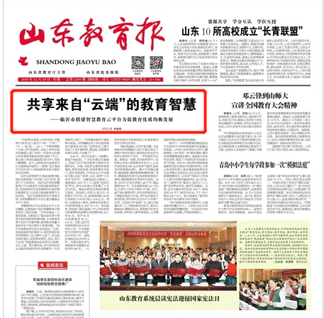 臨沂市智慧教育云平臺(tái)促進(jìn)教育優(yōu)質(zhì)均衡發(fā)展被《山東教育報(bào)》頭版頭條報(bào)道 |