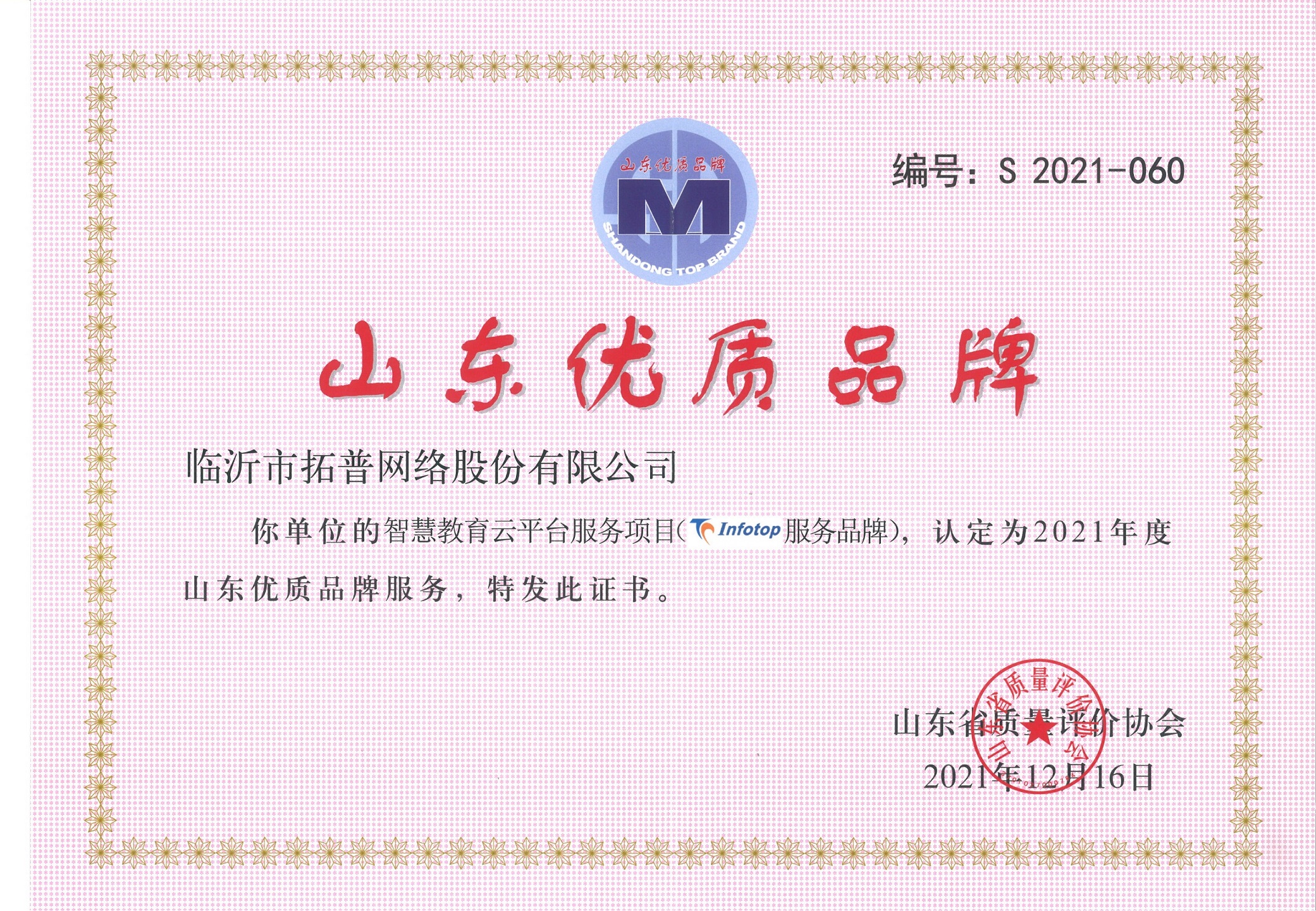 智慧教育云平臺(tái)認(rèn)定為2021年度山東優(yōu)質(zhì)品牌服務(wù) |