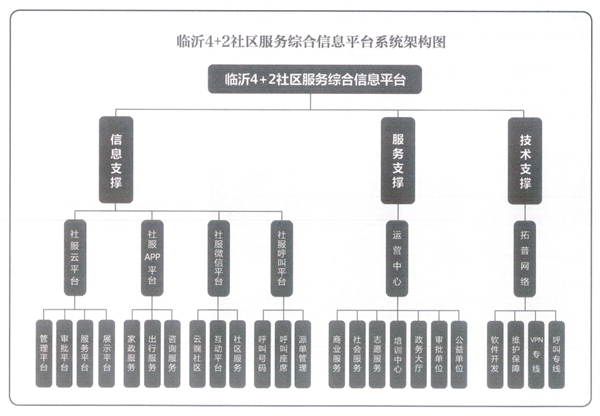 推進(jìn)社區(qū)(公共)服務(wù)綜合信息平臺(tái)系統(tǒng)建設(shè)采取了哪些措施? 一是加強(qiáng)組織領(lǐng)導(dǎo)。市及各試點(diǎn)縣區(qū)都建立了由民政部門(mén)牽頭的社區(qū)公共服務(wù)綜合信息平臺(tái)建設(shè)協(xié)調(diào)機(jī)制,加強(qiáng)與相關(guān)部門(mén)的溝通協(xié)調(diào),形成了整體合力。同時(shí),積極做好公共服務(wù)綜合信息平臺(tái)建設(shè)的統(tǒng)籌規(guī)劃、資源整合、設(shè)施布局、運(yùn)行管理和經(jīng)費(fèi)保障等工作。 二是完善籌資機(jī)制。整合社區(qū)建設(shè)資金和各部門(mén)信息化建設(shè)項(xiàng)目資金,逐步建立完善多元化籌資機(jī)制,逐步提高社區(qū)信息裝備條件和社區(qū)服務(wù)信息化水平,市里協(xié)調(diào)財(cái)政部門(mén)將城鄉(xiāng)社區(qū)建設(shè)補(bǔ)助經(jīng)費(fèi)積極向社區(qū)服務(wù)綜合信息平臺(tái)建設(shè)項(xiàng)目?jī)A斜。同時(shí)我們積極鼓勵(lì)社會(huì)力量參與,充分發(fā)揮通信運(yùn)營(yíng)商、信息服務(wù)商和軟硬件供應(yīng)商在技術(shù)、人才、資金和信息基礎(chǔ)設(shè)施等方面的優(yōu)勢(shì),為推動(dòng)工作開(kāi)展發(fā)揮了積極作用。 三是確保信息安全。利用市政府云計(jì)算中心,制定并嚴(yán)格實(shí)施了信息安全和保密解決措施,加大安全可靠軟硬件產(chǎn)品應(yīng)用力度,平臺(tái)系統(tǒng)全部自主研發(fā),自主產(chǎn)權(quán),確保了社區(qū)服務(wù)綜合信息平臺(tái)信息安全。 4+2社區(qū)(公共)服務(wù)綜合信息平臺(tái)系統(tǒng)的主要特點(diǎn)是什么? 臨沂4+2社區(qū)(公共)服務(wù)綜合信息平臺(tái)系統(tǒng)具有開(kāi)放性、包容性、系統(tǒng)性、實(shí)用性四個(gè)鮮明特點(diǎn)。所謂開(kāi)放性,就是這個(gè)信息平臺(tái)在哪個(gè)地方都可以使用,這個(gè)社區(qū)服務(wù)平臺(tái)軟件不只臨沂能使用,外地也可以引進(jìn)使用,具有推廣性;所謂包容性,就是這個(gè)平臺(tái)不只是民政部門(mén)可以使用,其他黨政部門(mén)也可以進(jìn)入和使用這個(gè)平臺(tái),具有共享性;所謂系統(tǒng)性,就是這個(gè)平臺(tái)系統(tǒng)由信息支撐、服務(wù)支撐、技術(shù)支撐三大要素支撐和四個(gè)信息平臺(tái)及四個(gè)云平臺(tái)子平臺(tái)組成,環(huán)環(huán)相扣,缺一不可,形成一體;所謂實(shí)用性,就是這個(gè)平臺(tái)具有管理功能、審批功能、服務(wù)功能和展示功能,在社區(qū)工作中用途廣泛,社區(qū)運(yùn)用這個(gè)平臺(tái)可管理、可審批、可服務(wù)、可展示,高效、快捷、方便地服務(wù)于社區(qū)居民。 4+2社區(qū)(公共)服務(wù)綜合信息平臺(tái)系統(tǒng)的主要內(nèi)容有哪些? 4+2中的“4”,是指臨沂社區(qū)(公共)服務(wù)綜合信息平臺(tái)系統(tǒng)由社區(qū)服務(wù)云平臺(tái)、社區(qū)服務(wù)APP平臺(tái)、社區(qū)服務(wù)微信平臺(tái)、社區(qū)服務(wù)呼叫平臺(tái)等4個(gè)不同模式的信息平臺(tái)組成,采用當(dāng)前信息化的各種方式,為社區(qū)服務(wù)提供全方位的信息化保障,讓社區(qū)居民實(shí)現(xiàn)即時(shí)即地的服務(wù)訴求;4+2中的“2”,一個(gè)是指臨沂大愛(ài)社區(qū)服務(wù)運(yùn)營(yíng)中心,負(fù)責(zé)組織、協(xié)調(diào)、銜接、評(píng)估等社區(qū)服務(wù)機(jī)構(gòu)的服務(wù)活動(dòng),快捷高效地為社區(qū)服務(wù)提供服務(wù)機(jī)構(gòu)和服務(wù)隊(duì)伍保障;一個(gè)是指臨沂市拓普網(wǎng)絡(luò)公司,負(fù)責(zé)對(duì)服務(wù)信息平臺(tái)的研發(fā)、運(yùn)營(yíng)、維護(hù)等,確保社區(qū)服務(wù)信息平臺(tái)在技術(shù)層面的高效運(yùn)轉(zhuǎn)和安全運(yùn)轉(zhuǎn)。 4+2社區(qū)公共服務(wù)綜合信息云平臺(tái)的主要功能是什么? 電腦版臨沂社區(qū)公共服務(wù)綜合信息云平臺(tái),主要由管理平臺(tái)、審批平臺(tái)、服務(wù)平臺(tái)、展示平臺(tái)四個(gè)子平臺(tái)板塊組成,分別對(duì)應(yīng)四個(gè)方面的功能。具體是:管理平臺(tái),開(kāi)展社區(qū)治理的重要平臺(tái),建有社區(qū)管理和居民管理的無(wú)限信息,宣傳社區(qū)治理的方針政策和部署要求,與六社聯(lián)動(dòng)和社區(qū)網(wǎng)格管理相結(jié)合,實(shí)現(xiàn)社區(qū)治理的信息化、精準(zhǔn)化、高效化。審批平臺(tái),受理申請(qǐng)審批業(yè)務(wù)的重要平臺(tái),讓社區(qū)居民的申請(qǐng)?jiān)V求不出社區(qū),實(shí)現(xiàn)在服務(wù)中心前臺(tái)受理、網(wǎng)上辦理、辦理進(jìn)度及結(jié)果及時(shí)在信息平臺(tái)向居民公示和反饋,極大提高辦事效率。服務(wù)平臺(tái),提供快捷高效服務(wù)的重要平臺(tái),擁有無(wú)限社區(qū)服務(wù)信息和資源,公示服務(wù)項(xiàng)目、服務(wù)流程、服務(wù)承諾等,配套社服手機(jī)App、呼叫熱線等方式,為社區(qū)居民提供及時(shí)、快捷的服務(wù)需求。展示平臺(tái),展現(xiàn)社區(qū)活動(dòng)的重要平臺(tái),介紹社區(qū)概況,實(shí)現(xiàn)黨務(wù)居務(wù)網(wǎng)上公開(kāi),及時(shí)發(fā)布社區(qū)動(dòng)態(tài),配套手機(jī)社區(qū)云平臺(tái),實(shí)現(xiàn)社區(qū)居民網(wǎng)上及時(shí)有效互動(dòng),展示社區(qū)美好