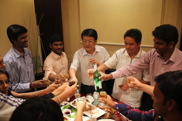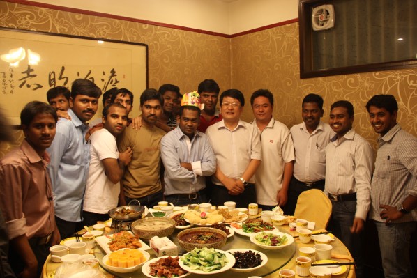 2012年9月15日,是印度籍員工Ratha24周歲生日,也是售前支持部林立斌舉行新婚喜宴的日子。這天,公司總經(jīng)理王嵐保、特邀嘉賓鄭科長和公司100余名中印員工歡聚一堂,為他們慶祝祝福。在此刻,沒有國界,現(xiàn)場氣氛歡樂融洽,愛和微笑讓大家的心緊緊相連在一起。