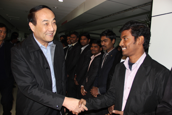 叢局長(zhǎng)一行在會(huì)議室認(rèn)真聽(tīng)取了王總對(duì)公司發(fā)展?fàn)顩r、中印軟件產(chǎn)業(yè)園的建設(shè)以及印度專家的引進(jìn)情況的介紹。叢局長(zhǎng)與印度專家BABU進(jìn)行了親密交談,對(duì)他們能來(lái)中國(guó)工作表示感謝,希望他們能真正適應(yīng)這里的工作和生活。