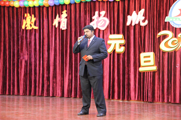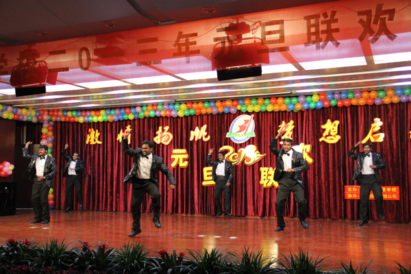 12月30日下午,由臨沂市外國語學(xué)校主辦、公司協(xié)辦的“激情揚(yáng)帆 夢想起航”2013年元旦聯(lián)歡會(huì)在臨沂市外國語學(xué)校演播廳舉行,公司領(lǐng)導(dǎo)張金剛、曹磊攜40余位中、印員工出席?,F(xiàn)場節(jié)目精彩紛呈,場面熱烈,印度員工KUMAR先生傾情獻(xiàn)唱,同時(shí),印度籍專家團(tuán)隊(duì)還將重新編排過的流行舞蹈《江南STYLE》再度搬上舞臺(tái),以搞怪夸張的方式讓觀眾大飽眼福,外國語學(xué)校精心準(zhǔn)備的歌舞表演、詩歌朗誦、樂器彈奏等節(jié)目贏得現(xiàn)場觀眾的陣陣掌聲。演出結(jié)束后,公司還為演出人員精心準(zhǔn)備了元旦禮物。