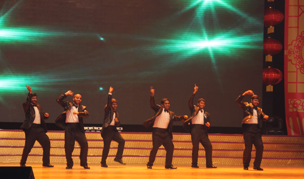 晚會在《金蛇舞新春》中拉開帷幕,近百名演員用歡快的舞蹈,舞出了豐收的喜悅和新春的希望。當(dāng)晚晚會節(jié)目豐富多彩,既有滿文軍、鄭緒嵐、常思思等知名藝術(shù)家的精彩演出,也有各部門各單位推薦的優(yōu)秀節(jié)目。其中,由開發(fā)區(qū)達(dá)人們演唱的《拜新年》,為大家獻(xiàn)上最美好的祝福;由開發(fā)區(qū)宣傳部創(chuàng)作的配樂詩朗誦《我捧起腳下這片熱土》謳歌了開發(fā)區(qū)人甘于奉獻(xiàn),揮灑汗水建設(shè)美好家園的壯志豪情;由開發(fā)區(qū)拓普網(wǎng)絡(luò)的印度專家、護(hù)士、警察、學(xué)生等群眾聯(lián)合主演的情景劇《滿天星》,將人們引入美好的遐想,由公司印度專家改編的“騎馬舞”閃耀全場,將氣氛不斷推向高潮。由于被熱情的舞臺所吸引,印度專家RATHA在其他演員都下場后還盡情的狂跳,幽默搞笑的氛圍感染了現(xiàn)場的每一位觀眾。