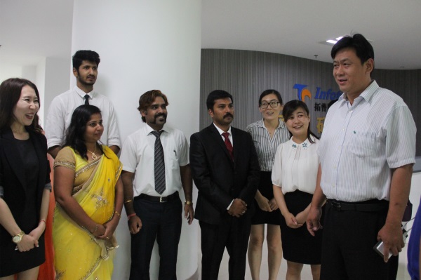 2017年7月15日,山東省電化教育館館長王書勤一行蒞臨國家中印科技國際創(chuàng)新園視察指導(dǎo)工作。 王書勤館長一行參觀考察了研發(fā)中心高科技互動體驗(yàn)展廳、臨沂市大數(shù)據(jù)中心、微課創(chuàng)作室、保密室、臨沂市教育教學(xué)資源研發(fā)中心、黨員活動室等,重點(diǎn)聽取了臨沂市智慧教育云平臺的演示匯報(bào),考察體驗(yàn)了臨沂智慧教育創(chuàng)客活動中心的VR虛擬世界、機(jī)器人演示、創(chuàng)意創(chuàng)客教學(xué)、健康小屋等內(nèi)容,還參觀了園區(qū)的自助餐廳、報(bào)告廳、培訓(xùn)中心、外國專家公寓等地,最后在開發(fā)區(qū)第一實(shí)驗(yàn)小學(xué)聽取了老師的應(yīng)用講解匯報(bào),并召開了座談會。