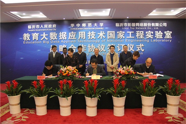 國家中印科技國際創(chuàng)新園“山東省教育信息化應(yīng)用培訓(xùn)基地”在臨沂揭牌,臨沂市政府、華中師范大學(xué)、臨沂市拓普網(wǎng)絡(luò)股份有限公司三方成功舉行了“教育大數(shù)據(jù)應(yīng)用技術(shù)國家工程實驗室”戰(zhàn)略合作協(xié)議簽訂儀式。