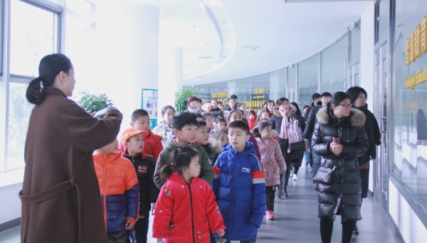 工作人員講解公司概況 在公司大樓的一樓展廳,講解員認真講解公司概況、發(fā)展歷程,孩子們更是聽得全神貫注?!拔业陌职衷谘邪l(fā)部”“我的媽媽在教育云營銷部”,聽完講解后,孩子們對爸爸媽媽們的工作有了進一步了解。