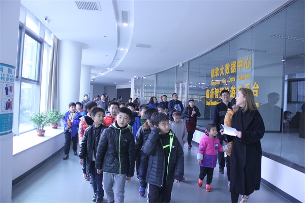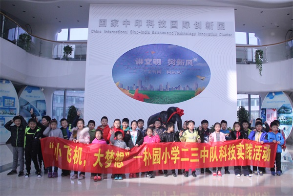 上午九點(diǎn)鐘,學(xué)生和家長們就早早地趕到國家中印科技國際創(chuàng)新園。學(xué)生們對(duì)科技園充滿了好奇,不時(shí)地詢問工作人員各種問題,“老師,這里有印度人工作嗎?”“老師,什么是云計(jì)算?”“老師,我真的可以和機(jī)器人下棋嗎?”在園區(qū)工作人員的帶領(lǐng)下,孩子們通過實(shí)地參觀,聆聽工作人員耐心的講解,逐一解開了心中的疑問。
