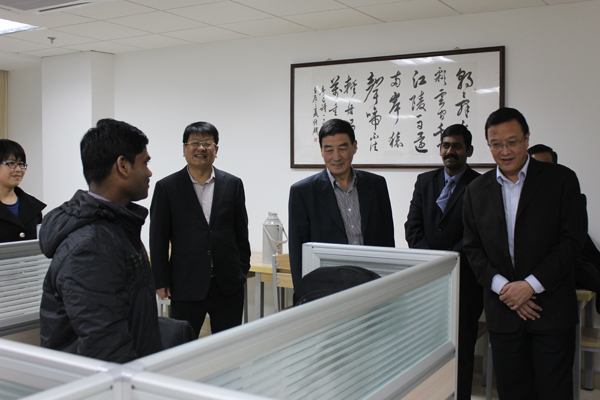 2013年3月12日,省外國(guó)專家局副局長(zhǎng)于順?biāo)?、省外?guó)專家局外國(guó)專家管理處副處長(zhǎng)楊國(guó)虎一行到公司視察指導(dǎo)工作,市外專局副局長(zhǎng)闞吉廷陪同。
