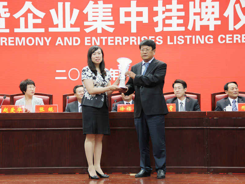 ![]() 王總作為掛牌企業(yè)代表發(fā)言 ![]() 王總向齊魯股交中心贈(zèng)送紀(jì)念品 ![]() 領(lǐng)導(dǎo)為公司掛牌鳴鑼開盤