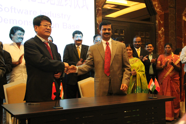 在會議上,公司總經(jīng)理王嵐保與SRM集團總裁瑪尼瓦納、SRM Learning Tree公司總經(jīng)理拉克西米簽訂“中印軟件產(chǎn)業(yè)園協(xié)議”和“中印高端人才合作協(xié)議”,并舉行了隆重的國際(中印)貿(mào)易網(wǎng)開通儀式。