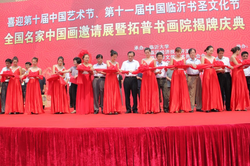儀式由臨沂市文廣新局局長曹首娟主持,魯迅美院著名教授、國畫系主任、研究生導師、中國美協(xié)會員李榮光先生和臨沂市拓普網(wǎng)絡股份有限公司總經(jīng)理王嵐保分別為開幕儀式致辭,中國美術家協(xié)會理事、江西省美協(xié)常務副主席兼秘書長李暉和臨沂大學黨委書記丁鳳云為拓普書畫院揭牌,臨沂市領導朱紹陽、慕增利、朱兆彬、 顏廷瑞、溫希森、李宏彥、龍巖等領導以及張大千門人、張大千畫派藝術創(chuàng)作中心藝術顧問江蘋先生、 山西省美協(xié)副主席、山西省文史館館員、山西當代花鳥畫研究院院長喬亞丁先生、 中國美協(xié)會員、中國徐悲鴻畫院藝術委員會主任,文化部中外文化交流中心秘書長衣慧春先生及全國及其他賜稿的應邀知名畫家、臨沂拓普書畫院院長、中國美術家協(xié)會會員、國家一級美術師顏泉等知名人士參加畫展開幕式并為本次活動剪彩。
