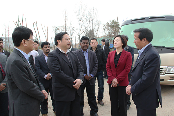 3月18日,襄陽市委常委、宣傳部長、副市長郭忠一行到中印軟件產(chǎn)業(yè)園考察公司文化產(chǎn)業(yè)及園區(qū)項目建設(shè)情況,市委常委、宣傳部長林國華,市人大常委會副主任、開發(fā)區(qū)黨工委書記徐福田,市政府副市長沈繼奔陪同考察。 ![]() 襄陽市委常委、宣傳部長、副市長郭忠(左二)
