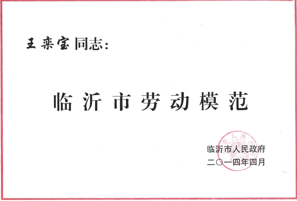 近日,在全市慶?!拔逡弧眹H勞動節(jié)暨勞動模范、模范集體表彰大會上,公司總經(jīng)理王嵐保被臨沂市人民政府授予“臨沂市勞動模范”稱號。