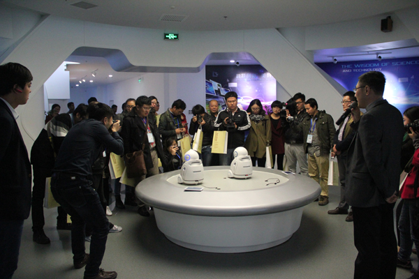 一走進(jìn)軟件產(chǎn)業(yè)園,各種高新科技產(chǎn)品讓記者們目不暇接。在展廳門(mén)口,一對(duì)造型憨態(tài)可掬的機(jī)器人正迎接著采訪團(tuán)的到來(lái)。“小優(yōu),給大家唱個(gè)歌聽(tīng)!”工作人員對(duì)著其中一個(gè)機(jī)器人說(shuō)?!昂玫?!那我就給大家唱一首?!畡e看我只是一只羊,綠草因?yàn)槲易兊酶恪泵行?yōu)的機(jī)器人歡快的唱起了動(dòng)畫(huà)片喜洋洋的主題曲,可愛(ài)的樣子讓圍觀的記者們?nèi)炭〔唤?。工作人員介紹,這些可愛(ài)的機(jī)器人可以通過(guò)聲音控制,與人們進(jìn)行交流互動(dòng),在幼兒?jiǎn)⒚煞矫婺芷鹬匾饔谩?/span>