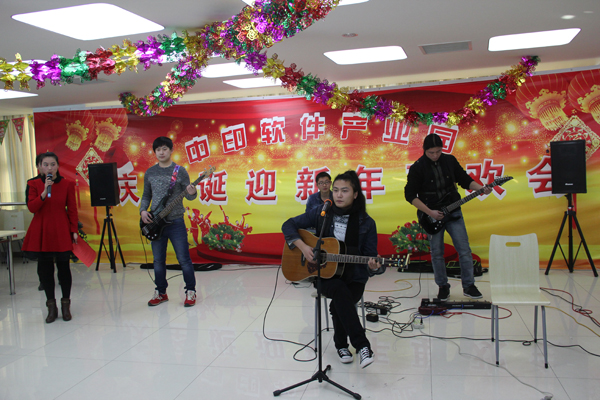 臨沂大學(xué)活動(dòng)中心火焰琴行一曲吉他彈唱《在劫難逃》拉開了整個(gè)聯(lián)歡會(huì)的序幕。吉他、電子琴、架子鼓,再加上優(yōu)美的演唱,激發(fā)了觀眾的搖滾熱情。歌曲、舞蹈、笛子獨(dú)奏,精彩的節(jié)目讓觀眾應(yīng)接不暇。其中,拓普公司里印度專家的舞蹈《Indian Rockers》以及歌曲《Why This Kolaveri Di》,讓觀眾領(lǐng)略了印度風(fēng)情。天河智能培訓(xùn)學(xué)校的學(xué)生有創(chuàng)意的表演《小人舞》、《雷人舞》贏得觀眾一致喝彩。