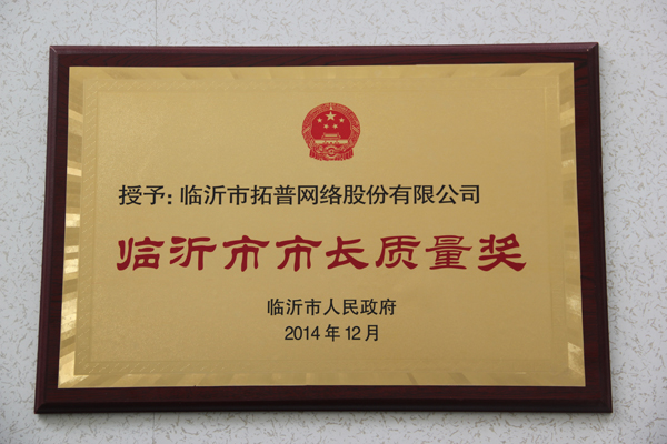 2015年4月10日,臨沂市政府召開(kāi)全市質(zhì)量工作會(huì)議,會(huì)上公布表彰了2014年度臨沂市市長(zhǎng)質(zhì)量獎(jiǎng)獲獎(jiǎng)單位和個(gè)人,公司成為臨沂市市長(zhǎng)質(zhì)量獎(jiǎng)獲獎(jiǎng)單位之一。