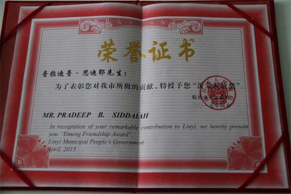祝賀印度專家普拉迪普博士榮獲“沂蒙友誼獎” |