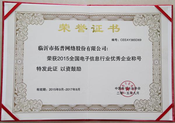 ?熱烈祝賀公司榮獲“2015全國(guó)電子信息行業(yè)優(yōu)秀企業(yè)”稱號(hào) |