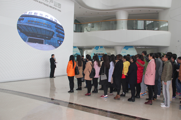 學(xué)生參觀中印軟件產(chǎn)業(yè)園展廳 招聘會(huì)開始前,與會(huì)的學(xué)生參觀了中印軟件產(chǎn)業(yè)園,會(huì)后,學(xué)生在中印軟件產(chǎn)業(yè)園餐廳享受了豐盛的午餐。 |