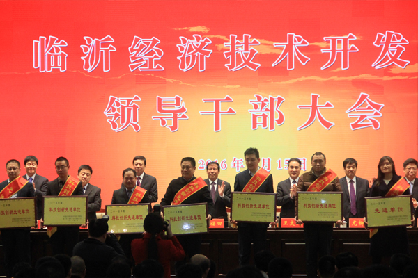 2016年1月15日,臨沂經(jīng)濟(jì)技術(shù)開發(fā)區(qū)領(lǐng)導(dǎo)干部大會在臨沂國際會展中心舉行,會議旨在貫徹黨的十八大和十八屆三中、四中、五中全會以及習(xí)近平總書記系列講話精神,總結(jié)工作、表彰2015年度創(chuàng)業(yè)功臣、功勛企業(yè)等先進(jìn)個人、先進(jìn)集體。在此會議上,公司獲得“2015年度科技創(chuàng)新先進(jìn)單位”榮譽(yù)稱號,公司外籍專家普拉迪普博士、卡瓦利博士獲得“2015年度十佳科技領(lǐng)軍人物”榮譽(yù)稱號。
