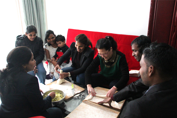 臨近中國(guó)農(nóng)歷新年,公司許多印度員工選擇留在中國(guó),感受農(nóng)歷年俗的歡樂(lè)氣氛。為了讓他們感受不一樣的新年,為了讓公司這些遠(yuǎn)離家鄉(xiāng)的印度員工也來(lái)感受中國(guó)人最傳統(tǒng)、最隆重的新春佳節(jié),公司安排他們的家人也來(lái)到了中國(guó),了解中國(guó)傳統(tǒng)文化,體驗(yàn)中國(guó)古老節(jié)日的喜慶氣氛,讓春節(jié)真正團(tuán)圓,公司中國(guó)員工還特地邀請(qǐng)他們一起,包餃子、寫(xiě)春聯(lián),準(zhǔn)備熱熱鬧鬧過(guò)大年。